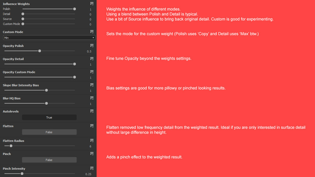 With this Substance 3D Designer custom node you can blur and polish inputs to create really interesting effects that will look good and safe you a lot of time. It is super useful for creating detailed generic surfaces, plaster, grout, dirt etc with a minimal amount of nodes. Similar to my STW Edge Wear 2 node you blend between 4 weighted modes and have a couple extra options to fine tune your results.